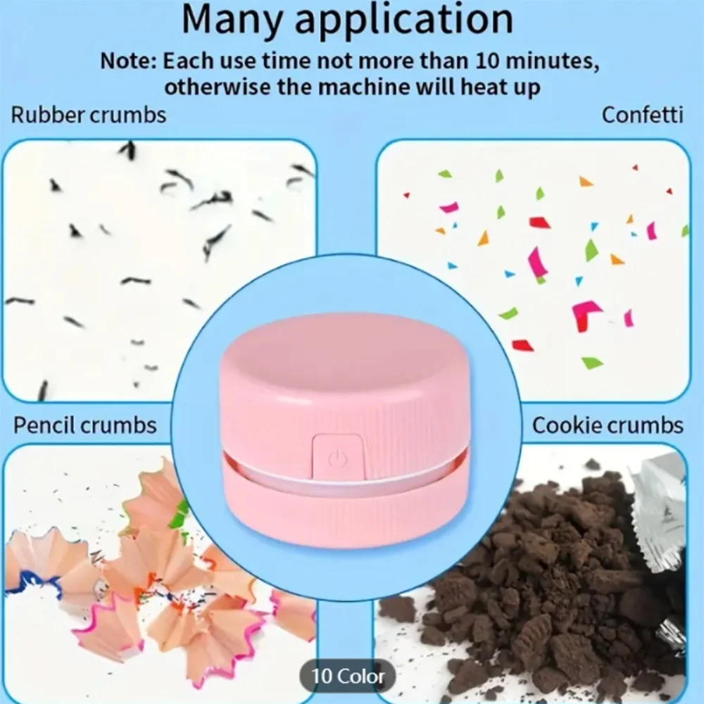 This creative mini desk cleaner is perfect for office or home desk to remove eraser slag, ash biscuit crumbs, paper scraps or dust. Simply turn on the power and move it on your desk, keyboard, cushion, sofa, furniture, etc. This mini desk cleaner helps save your cleaning time. Its can be also used as wireless . This multifunctional cleaner can be your efficient assistant in your life and work.